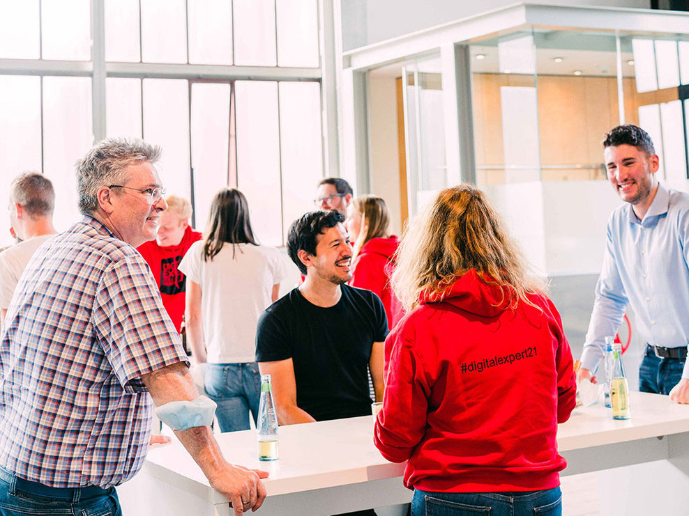 Wir wollen, dass du Teil einer unternehmensübergreifenden Community wirst und du das Handwerkszeug erlernst, um tolle Projekte und digitale Themen auf den Weg zu bringen!