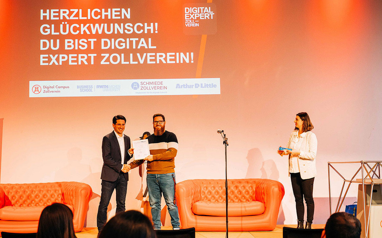 Mit dem erfolgreichen Abschluss des Programms erhältst du ein Zertifikat der RWTH Business School, das dich als Digital Expert Zollverein ausweist.